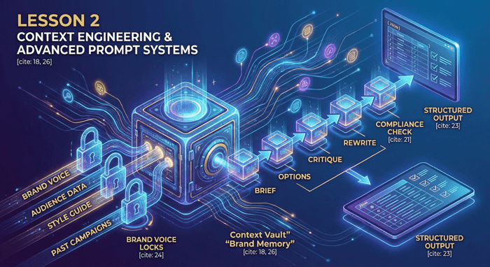 Practical Lab: Build a reusable Campaign Prompt Pack with a fixed “Context Vault” for your brand.