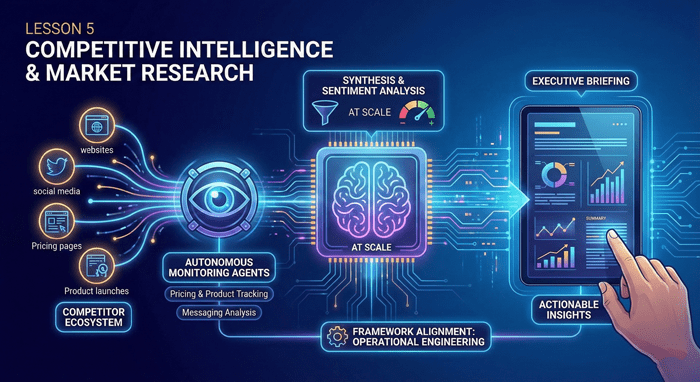 Competitive Monitoring Agents: Automated tracking of pricing, messaging, and product launches.