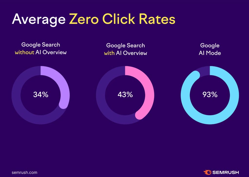 Now, 93% of those who use Google AI Mode leave satisfied. Just 7% click through.
