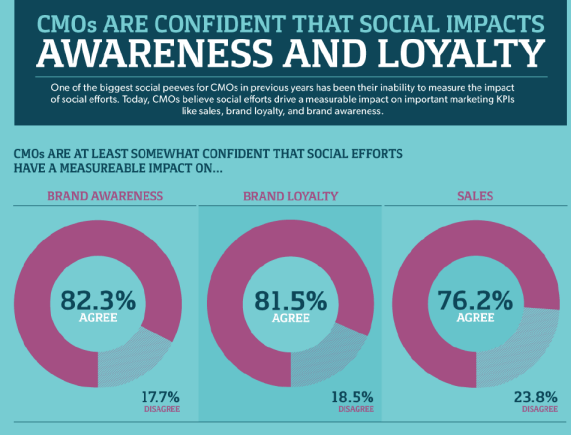 And, according to recent research cited by Lyfe Marketing, Chief Marketing Officers (CMOs) believe that social efforts drive a measurable impact on important marketing KPIs such as sales, brand loyalty and brand awareness.