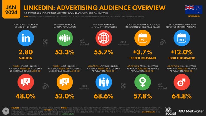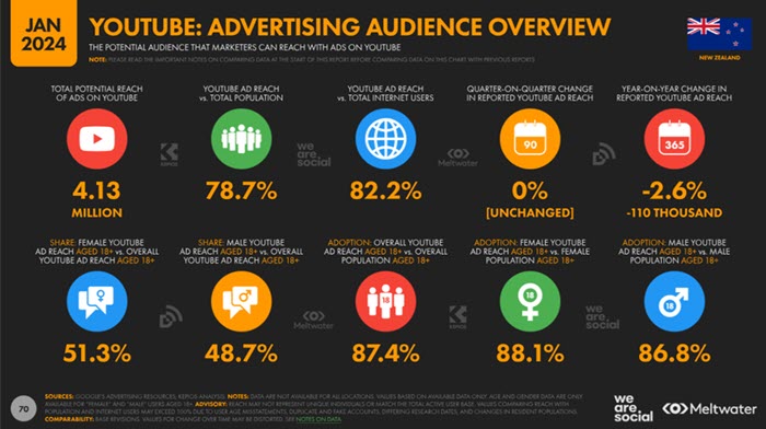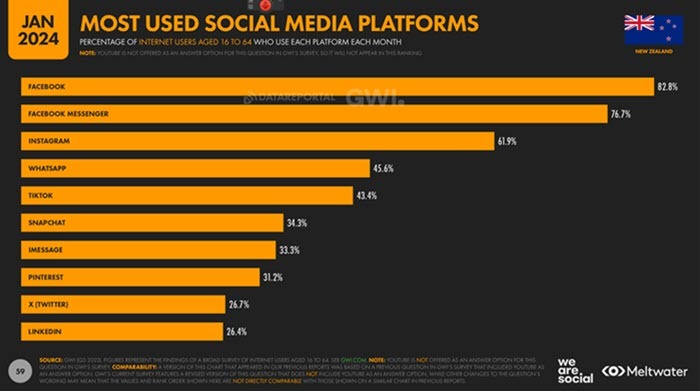 Oh, and just to round out the main social media platforms in use in New Zealand, here are the key stats for: